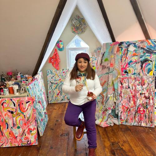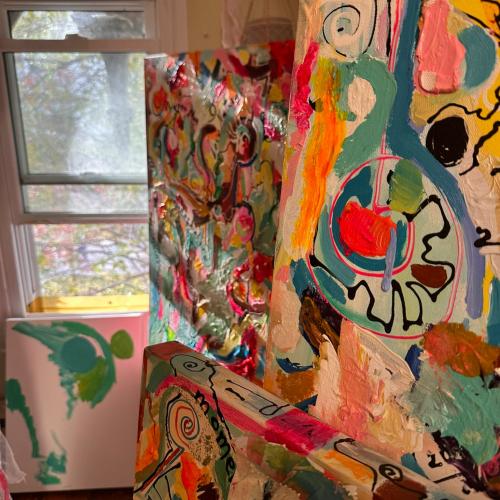 My paintings are playful, spirited, freeform, and deceptively complex. My work explores and interprets the world through a contemporary lens. Often drawing from the ethereal sounds of nature, including the haunting melodies of whales, I translate auditory sensations into vibrant visual masterpieces. My technique incorporates a combination of both traditional and experimental methods. While I may start with a base layer using brushes, as the artwork progresses, I might transition to palette knives, sponges, or even my fingers to add depth, texture, and layers to the piece. Incorporating diverse media allows for a richer visual experience. They lend different textures and tones to the artwork, adding layers of depth and detail that invite the viewer to look closer, to delve deeper. This unique approach captures not just color and form, but the very pulse and rhythm of the natural world.